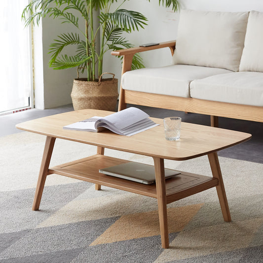 100% Oak Solid Wood Coffee Table with Storage Shelf Rectangle Natural / Walnut (31.49"/ 39.37"/ 47.24")