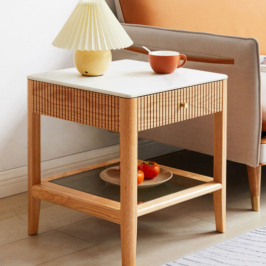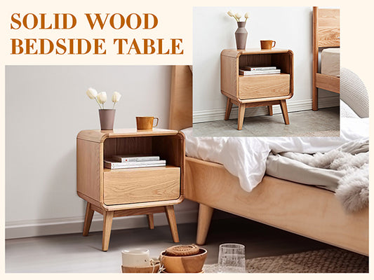 100% Wood Nightstand Bed Side Table with Drawers (Natural)