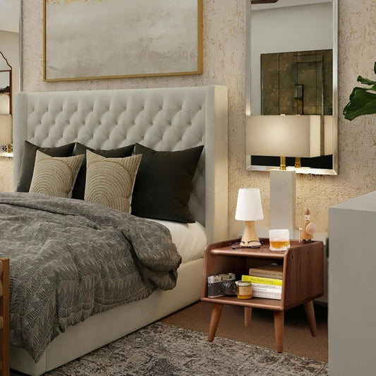 2 件 100% 实心橡木床头柜(胡桃木色)
