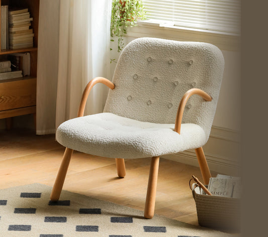 Nordic Shearling Accent Chair - Solid Beech Wood Lounge Chair with Plush Removable Cushion