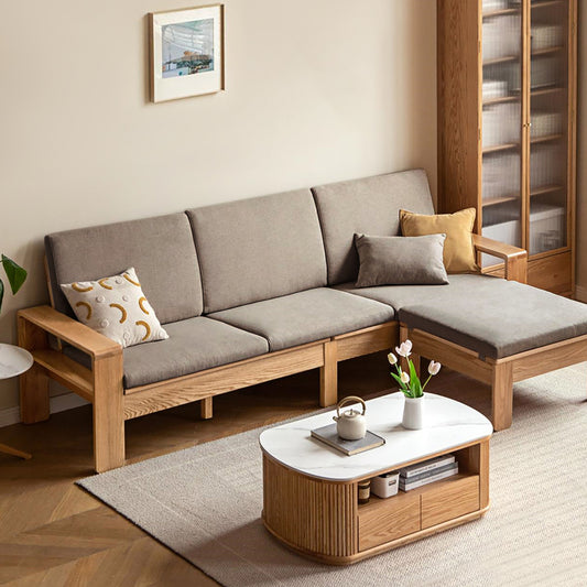 Modern Minimalist Solid Wood Sofa – Oak Fabric Down Sofa for Japanese Living Rooms and Small Spaces