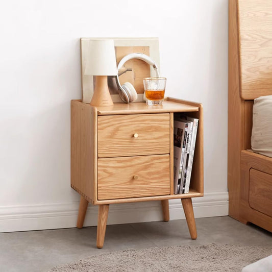 100% 实心橡木边桌/茶几床头柜,带储物袋(自然色/胡桃木色)