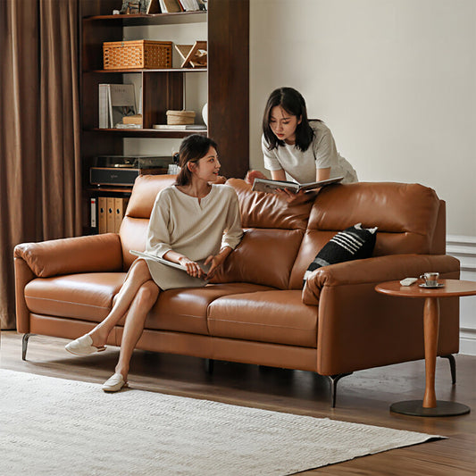 Italian Luxe Genuine Leather Sofa – Top-Grain Cowhide Down Leather Sofa for Compact Living