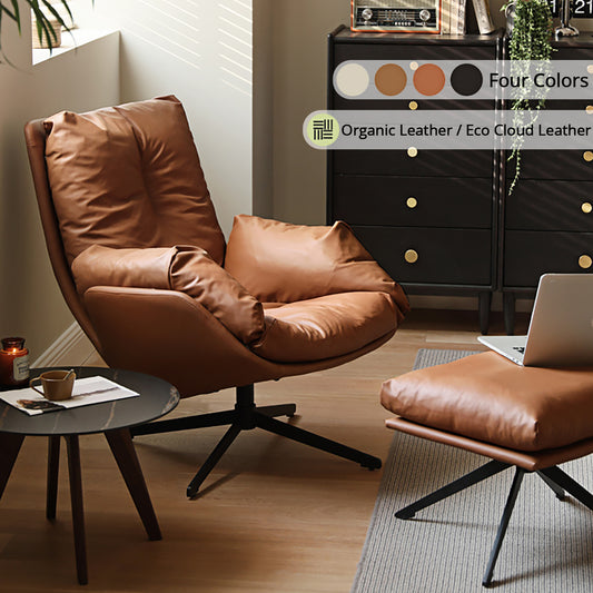 Organic Silicone Leather Swivel Chair - Italian-Inspired Accent Chair with Goose Down Cushion & Cat-Proof Design