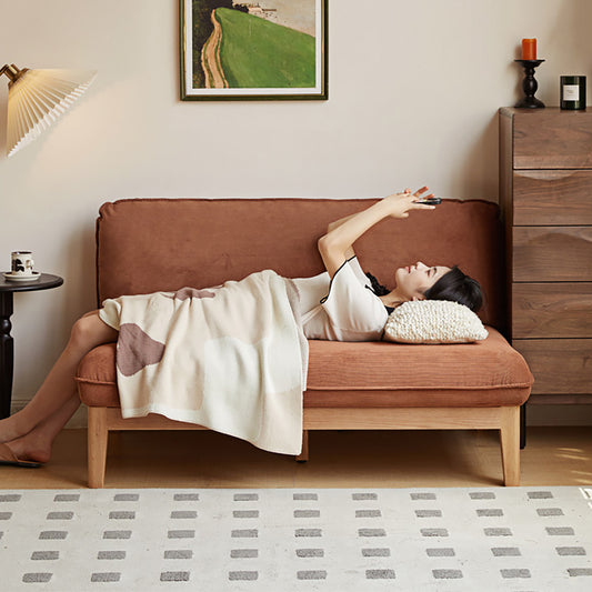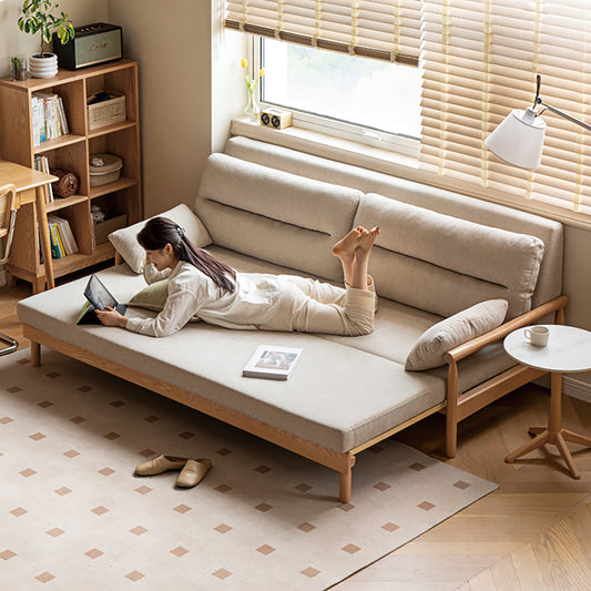 Oak Convertible Sofa Bed - Space-Saving Japanese Design with Washable Fabric & Solid Wood Frame