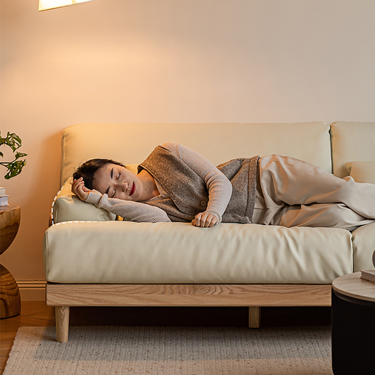 Modern Minimalist Solid Wood Sofa – Oak Fabric Down Sofa for Japanese Living Rooms and Small Spaces