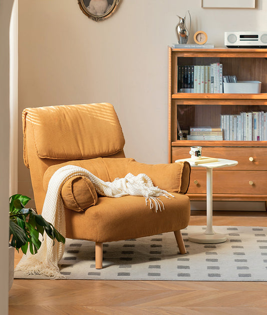 Retro Corduroy Lounge Chair - Compact U-Arm Design with Solid Beech Wood Base