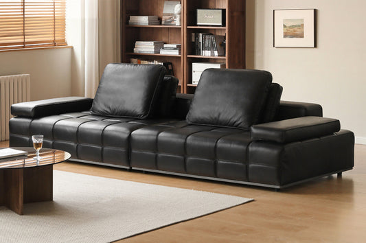 Genuine Leather Sofa – Italian Minimalist High-Back Top-Grain Black Leather Sofa