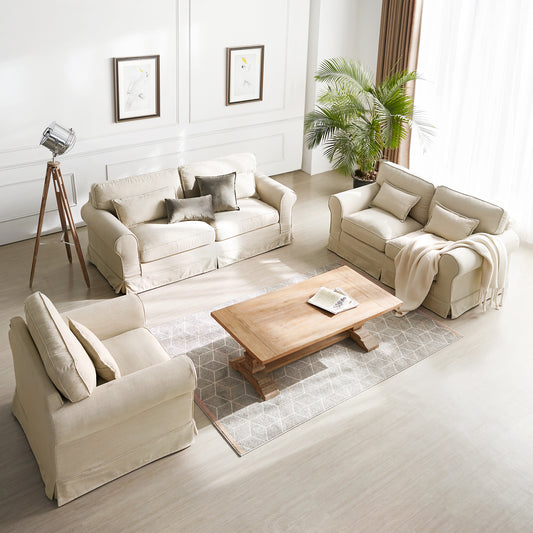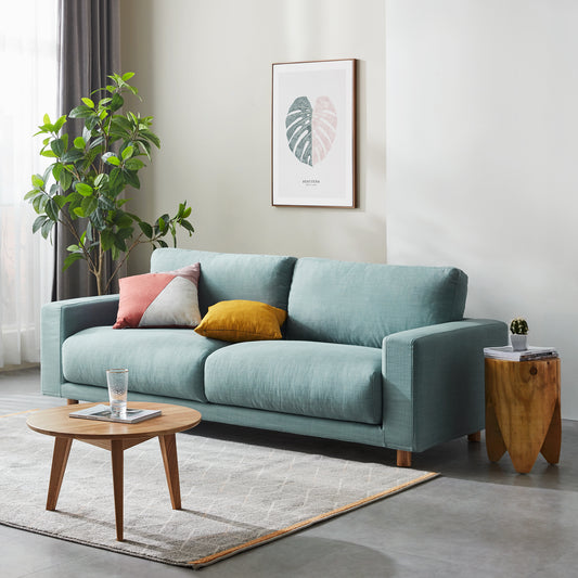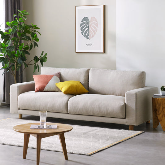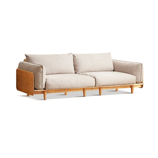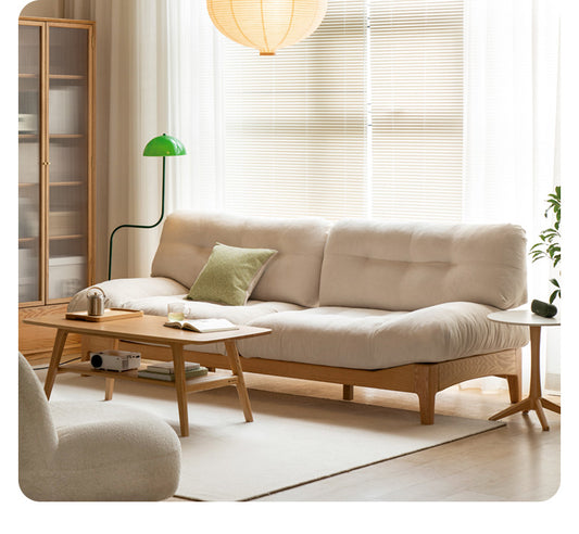 Solid Wood Fabric Sofa – Modern Minimalist Oak Storage Sofa for Small Living Rooms