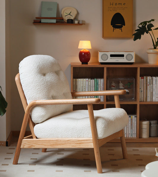 Solid Wood Lounge Chair - Modern Minimalist Design with Washable Fabric & Oak Frame