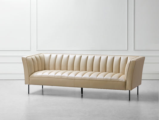 Solid Wood Cherry Sofa – Modern Minimalist Nordic Linear Sofa, Genuine Leather Couch for Small Living Rooms